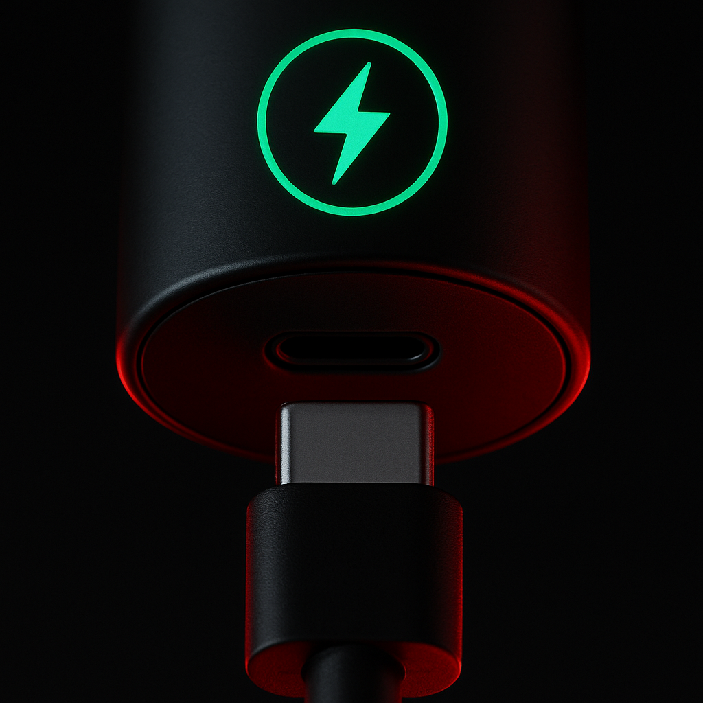 Convenient, fast charging with industry standard connection. A full charge lasts ~2 weeks of regular use.